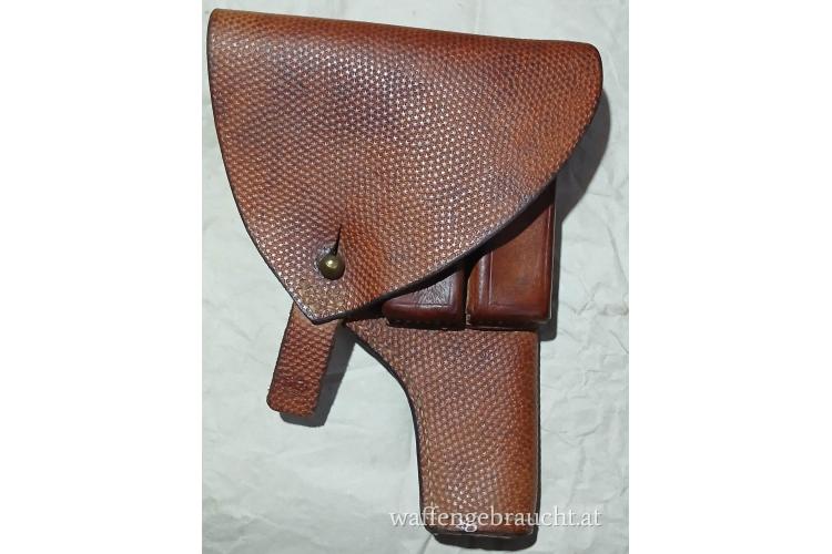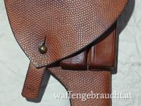 Sehr gut erhaltener Lederholster aus Schweden für ua Pistolen Lahti M35, Husqvarna M40 aus der Zeit des zweiten Weltkrieges . Schwedisches Hoheitszeichen eingestanzt, siehe Foto.