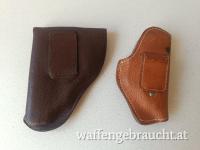 Aus Nachlass Holster Mitte Hellbraun Verkauft, Schulterholster Sickinger 42-, alter Holster Rechts ca 1940 29.-, links aus den 40 Jahren mit 30.- CZ Vzor Beamten Holster gestempelt 27.- mit Reserve Magazin Tasche 27.- die kleinen alle für 6,35 Pistolen Walther, Mauser, FN Baby, 1906 Cu Duo Etc( suche)
