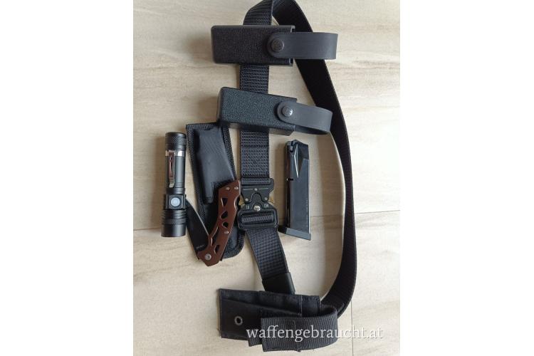 Takt. Gürtel komplett mit 2 Stk Beretta 18 Rd Magazinen für 92er Serie (M9A3, 92x), 2 Stk ABS Magazinholster, taktischer LED Taschenlampe, taktischem Kugelschreiber aus Metall sowie einem Taschenmesser mit Fixierung und Tasche zu verkaufen! Alternativ mit Magazinholster aus Leder für kleinere Magazine auf Anfrage. Nur als Set, keine Einzelabgabe!