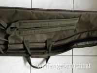 Im Inneren ist eine dicke Schaumstoffpolsterung eingesetzt, so dass auch bei derben Stößen Ihre Waffe jederzeit unversehrt bleibt. Ein weicher Bezug schützt dabei Waffe und Optik vor Kratzern. Mit seinen Innenabmessungen von ca. 135 cm Länge und 32 cm Breite hebt sich das Futteral von gewöhnlichen Futteralen ab. Daher können nahezu alle Waffen, auch Modelle mit montiertem Zweibein und/oder Schalldämpfer, problemlos verstaut werden. Durch die bequem gepolsterten Tragegriffe und den beiden justierbaren Ruchsacktrageriemen (in einer Tasche verstaubar) kann das Futteral entweder in der Hand oder auf dem Rücken ermüdungsfrei getragen werden.