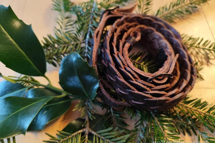 Biete einen hochwertigen, geflochtenen Gewehrriemen aus echtem Leder.