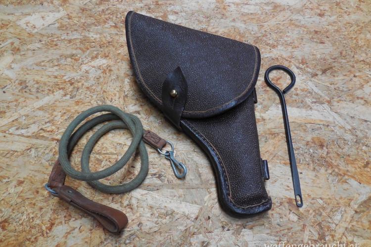 Schöner neuwertiger und originaler russischer Holster für den M1895 Nagant Revolver komplett mit neuwertigem Fangriemen sowie dem passenden Putzstock. Alle Nähte ok, keine verdeckten Mängel.