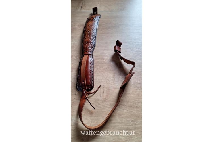 Hunter Gewehrriemen aus Leder mit Schulterpolster und Jagdmotiv