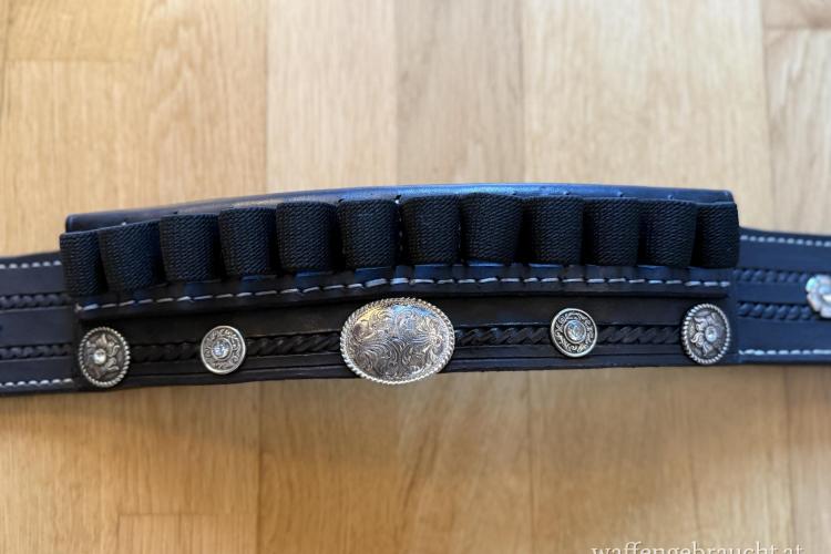 Patronengurt schwarzes Leder, reich verziert.