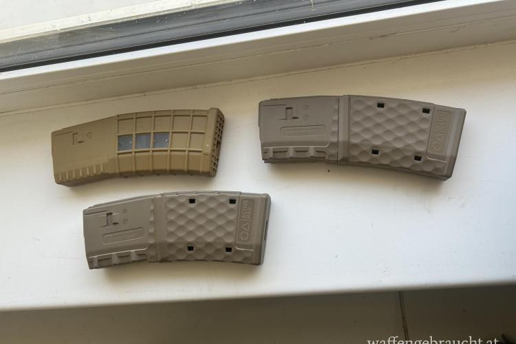 30 Schuss Optik, sind aber nur 10 möglich. Auch für c Waffen geeignet. 3 Stück zusammen 50