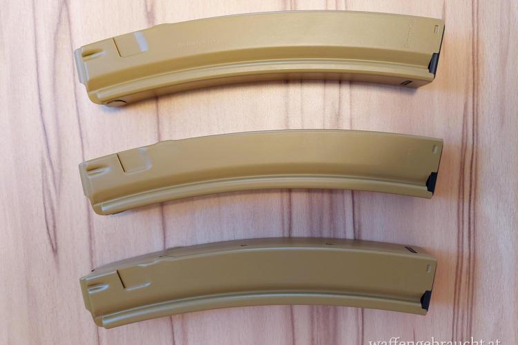 Biete 3 seltene, originale Heckler & Koch MP5 30-Schuss Magazine in RAL8000.