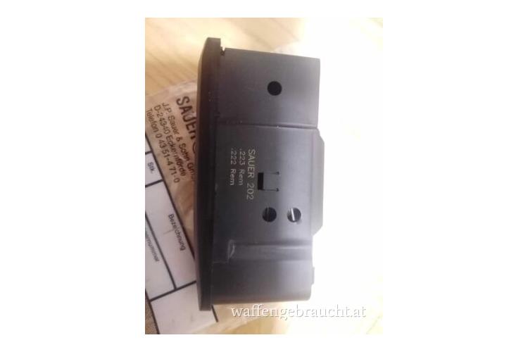 Biete ein neuwertiges Original‑Magazin für die Sauer 202 im Kaliber .223 Remington. Das Magazin wird nicht mehr produziert und ist entsprechend schwer zu bekommen.