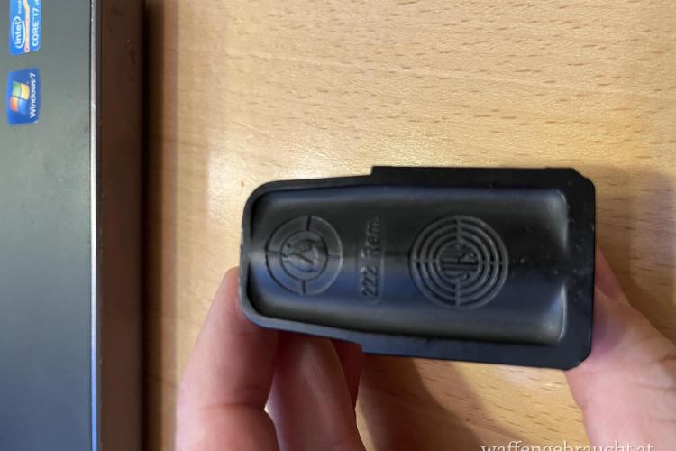 Gebe ein Trommelmagazin .222 SL (ganz alte Ausführung mit Magazinverriegelung am Abzugsbügel) ab. Magazin noch schwer erhältlich. Funktionsfähig mit Altersbedingten Gebrauchsspuren, Zustand wie auf den Bildern ersichtlich. Preis exklusive Versand.