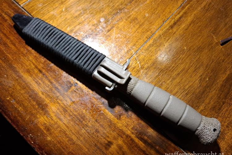 Eine Klinge wurde blank poliert, der Griff wurde gestippelt. Die Scheide wurde ebenfalls mit 4m Paracord gewickelt. Die Klinge wurde ebenfalls rasiermesserscharf geschliffen. Einzelpreis 45.-