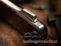 Das Böker 98k-Damast greift verschiedene Designelemente des 98k-Bajonetts auf und ist zudem mit einer einzigartigen Damast-Klinge aus dem Laufstahl der Mauser-Karabiner ausgestattet. Der bemerkenswerte Damast mit 80 Lagen wird für uns von Chad Nichols von Hand im Muster Ripple geschmiedet. Die einzigartige Klinge mit ausgeprägter Fehlschärfe wird per Nagelhau geöffnet und von einem stabilen Backlock zuverlässig arretiert. Die Griffschalen aus heimischem Walnussholz nehmen die diagonal geriffelte Struktur der Bajonettgriffschalen auf und sorgen für sicheren Halt. Unter der Backe aus Stahl wurde zudem der Querstich zum seitlichen Reinigen des Schachtes der Putzstockaufnahme übernommen. Handgefertigt in der Böker Messer-Manufaktur Solingen. Mit edlem Schwebedisplay, Echtheitszertifikat und individueller Seriennummer.