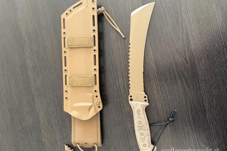 Das Buck Talon 808 ist ein großes Survivalmesser, fast schon eine Machete. Es ist vielseitig einsetzbar, z.B. beim Campen oder für Gartenarbeiten. Ursprünglich wurde es entwickelt, um im Dschungel Wege freischlagen zu können. Die Klinge hat eine „Hawkbill“-Form, sie sieht fast aus wie ein Haken. So wird das zu schneidende Material in die Schneide gezogen wird, was das Schneiden sehr effizient macht.
