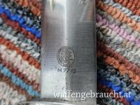 Klinge: Die Klinge ist blank und ohne Schäden. Die SA Devise «Alles für Deutschland» ist noch mit fabrikgrauem Hintergrund. Leichte Spuren von der Scheide. Auf der Rückseite befindet sich das RZM Herstellerlogo.