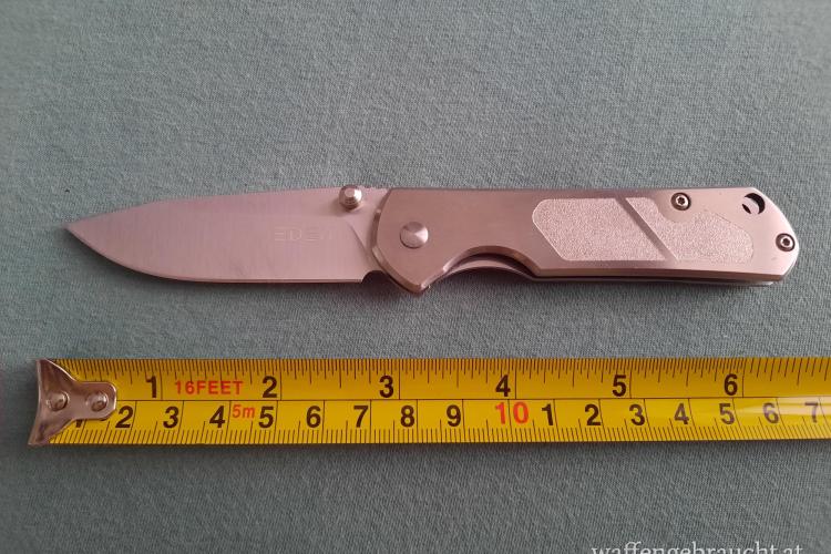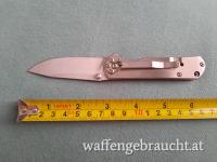 Praktisches Einhand EDC Messer. Mit Thumbstudds beidseitig zum Einhändigen Öffnen. Einrastefunktion dank Framelock. Metallgriff mit Taschenclip und Bohrung für Riemen.