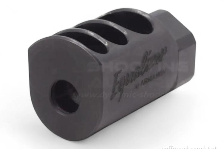 Der Kompensator "Equalizer" für 9mm PCC st eine speziell entwickelte Mündungsvorrichtung mit drei ausschließlich nach oben gerichteten Gasöffnungen. Diese gezielte, gebündelte Gasumlenkung reduziert den Hochschlag durch die entstehende Gegenkraft nach unten effizienter als seitliche Ports – gerade bei dem vergleichsweise geringen Gasdruck von 9 mm-PCC-Systemen.