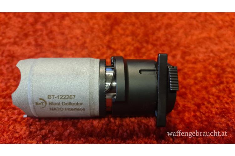 Der Blast Deflector mit dem neuen leichteren ROTEX-X Verschluss wird ganz einfach an der NATO Schnittstelle der Mündungsbremse installiert und sorgt für eine Unterdrückung des Mündungsfeuers und befördert den restlichen Gasdruck nach vorne. Dies ist besonders bei kurzen Lauflängen sehr nützlich.