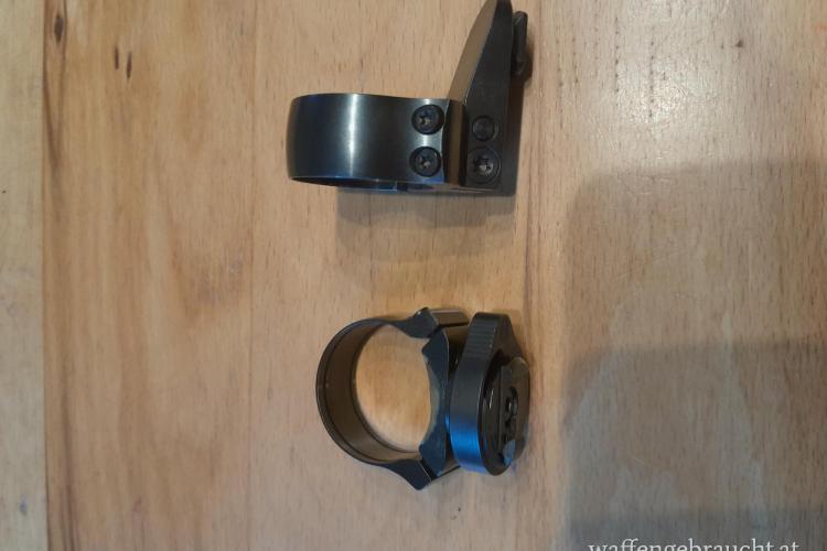 Schwenkmontage mit 30mm Ringen für 14mm Schiene. Klebereste sind vorhanden können aber entfernt werden.