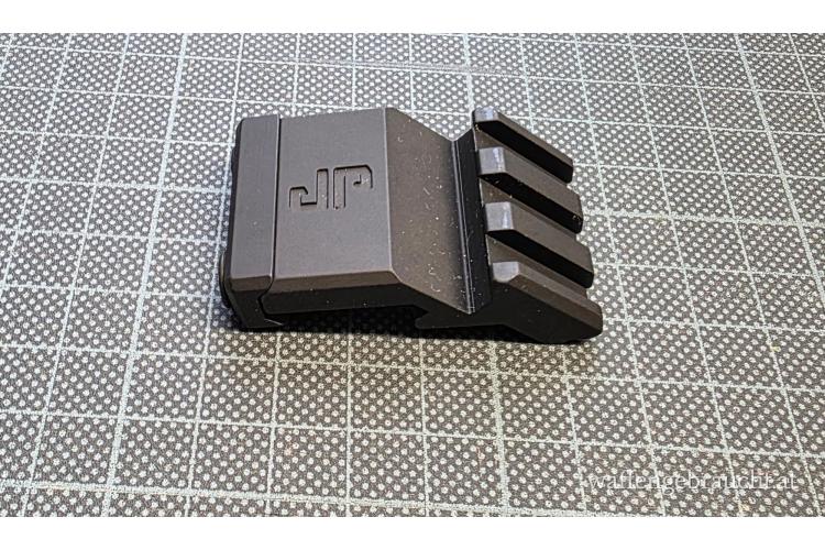 Der Offset Adapter von JP Enterprises ermöglicht die Montage jeglichen Zubehörs das Picatinny Rail kompatibel ist im 45° Winkel.