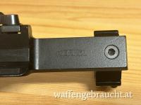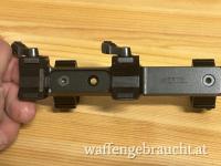 Die sehr geschätzte Montage nach Bauart Suhler Aufkippmontage für die vier Aufnahmen im Laufansatz, die sich serienmäßig auf den Merkel-MEN-Waffen der Modelle KR1, B2, B4, K3, K4 und neu K5 befinden.