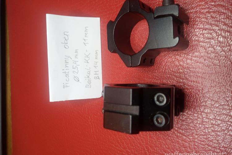 Aluminium-Montageringe für Mittelrohrdurchmesser 25,4 mm für 11 mm-Schiene > Baikal oder KK-oder Luftdruck-Waffen. Mit weiterer Picatinnyschiene oben für Laser/Licht etc.