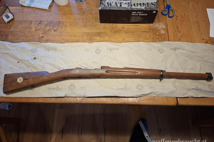 Holzschaft für Schwedenmauser Carl Gustaf M/96.Der Schaft befindet sich in gutem Zustand.Beschlagteile sind in gutem Zustand, Plakette sieht sehr gut aus.
