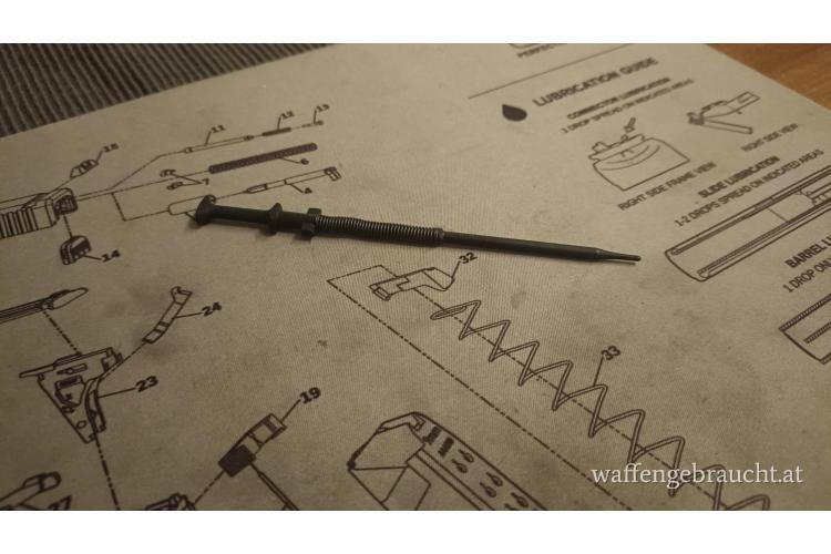 Wurde nur einmal kurz eingebaut um zu überprüfen ob er passt (scharf geschossen wurde damit nicht) - die Militaria Schlagbolzen (werden immer OHNE Feder verkauft) passen NICHT in die Aug Z Modelle da diese grösser sind (hab ich selbst probiert, leider...)