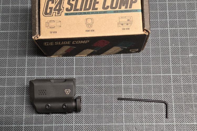Der Slide Comp von Strike Industries für Glocks der 4ten Generation bietet die einfache Möglichkeit einen Kompensator anzubauen ohne den Lauf zu tauschen.