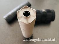 Zum Verkauf steht ein wenig benutzter B&T Rotex-V Schalldämpfer mit Anschluss für Standard A2 Mündungsaufsätze (zB A2 Birdcage) für Kaliber .223 rem.