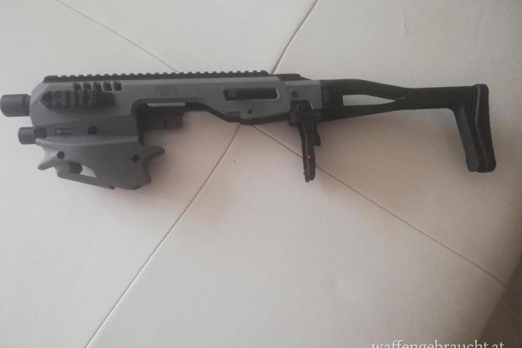 CAA MICRO CONVERSION KIT SIG P320 RONI G5 Schaftsystem CAA MICRO RONI Conversion Kit für SIG-Pistolen P320 und P320 Compact. Ein System aus Polymer und Aluminium, der halbautomatische Pistolen in handliche Karabiner verwandelt, die sich zur Selbstverteidigung, Nachsuche, für das Sportschießen und für taktische Einsätze eignen. Nach Einbau der Pistole in das MICRO RONI G5 Schaftsystem bleibt Ihre Pistole nach den gesetzlichen Vorschriften eine Kurzwaffe - Kann auch mit eingeklapptem Schaft bedient werden. Dieses CAA Micro Conversion Kit ist eine leichte und robuste Plattform für SIG Handfeuerwaffen. Es hat einen Laufmantel aus Aluminium mit einem Polymergehäuse. Schnellster Carbine Kit / Umrüstsatz auf dem Markt. Verbessert die Genauigkeit bis auf 180m Top Eigenschaften.