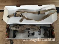 Verstellbare Schulterstütze mit einer länge von 47 - 56 cm Eine 24cm Picatinny Schiene erlaubt die flexibele Montage von verschiedenen Viserungen und Optiken. Zusätzliche Picatinny Schienen seitlich und unten. Die Montage eines Schalldämpfers ist bis zu einen Durchmesser von 35,5mm möglich. Inklusive klapp- und abnehmbaren Vordergriff. Seitlich kann ein Hülsenfänger befestigt werden.