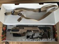 Mit dem Ladehebel kann beidseitig geladen werden. Inklusive Magazinhalterung am Schaft.