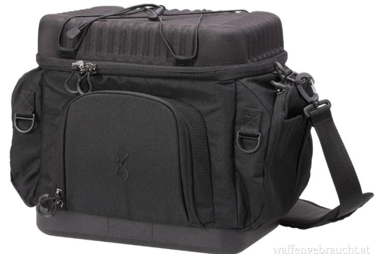 Die Browning Target Schießtasche in Größe L ist die ideale Lösung für Sportschützen und Jäger, die Wert auf Funktionalität und Ordnung legen. Aus strapazierfähigem schwarzem Polyester gefertigt, verfügt sie über einen festen Verbundstoffboden und einen harten Deckel mit zwei integrierten Pistolenfächern. Außen am Deckel befindet sich ein praktisches Kompressionssystem für Kleidung oder Zubehör.