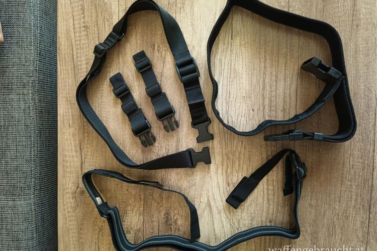 1 Stk. Gewehrschloss, 1 Stk. Nylon Einsatzgürtel, 2 Stk. Tragegurt