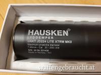 Maximale Dämpfleistung bei schlankem Design. Der Hausken Jakt 224 Lite XTRM verfügt über einen Außendurchmesser von 45 mm. Der Standard 224 hat einen Außendurchmesser von 50 mm. Das Gewicht beträgt nur 320 g. Trotzdem erreicht die Lite Version eine Dämpfleistung von bis zu 37 dB je nach Kaliber. Trotz seiner schlanken Form ist er auch für die Verwendung von Magnum Kalibern geeignet. Durch die Over Barrel Bauweise ist der Dämpfer nicht für Waffen mit offener Visierung geeignet. Der maximale Laufdurchmesser beträgt 23 mm.