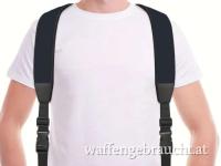 Diesen Gurt kann man einerseits als quasi Rucksack-Schultergurt verwenden, dass das Gewehr/die Flinte/die Armbrust in der Mitte am Rücken getragen werden kann, oder andererseits kann man aus diesem Schultergurt zwei einfache Schulterriemen machen - also aus 1 mach 2!
