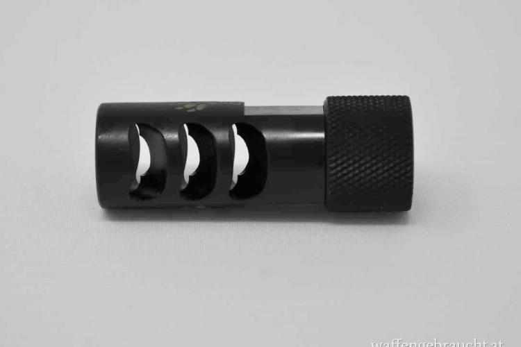 Die Mündungsbremse verfügt über 3 Ports mit 30-Grad-Winkel, was für einen geraden und weichen Rückstoß sorgt. Durchmesser beträgt .950″ und die Oberfläche ist mit einem schwarzen Nitrid-Finish versehen.