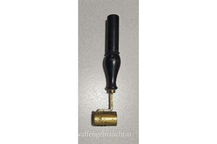 Lader, Messbecher aus Messing „Gramm Blei, Pulver“, Holzgriff