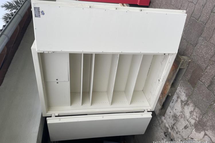 Der Waffenschrank verfügt über einen Feuerschutz und bietet Platz für ca. 30 LW.