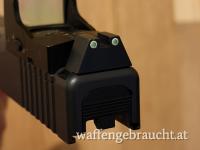 Erhöhte Kimme und Korn ideal für Red Dot Benutzer da man so die Optik sowie auch KK gleichzeitig nutzen kann. (Siehe Fotos)