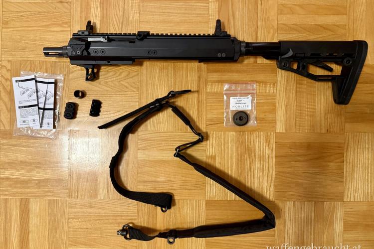 Länge | rd. 380 mm, ohne Buffer Tube, Schaft und Kompensator |