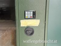 Zum Verkauf steht ein Langwaffenschrank der Marke Rottner, Modell Guntronic 5, mit Elektronikschloss in grün.