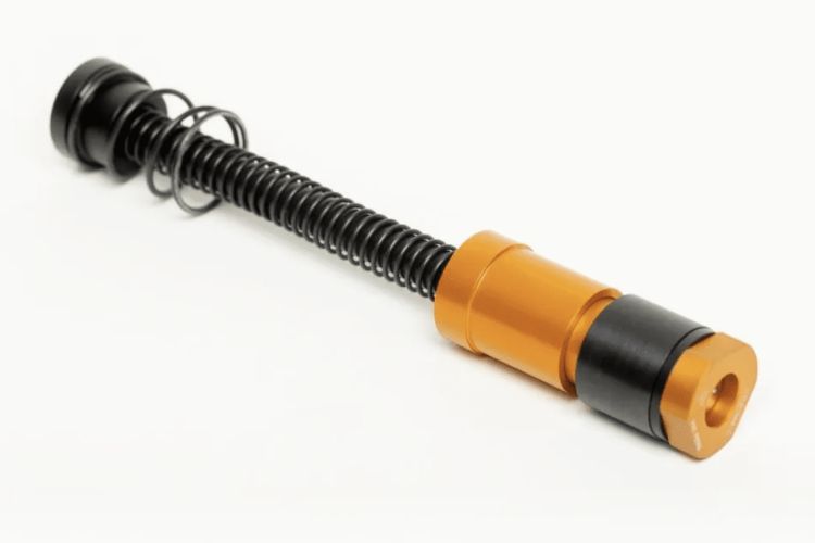Bestehend aus 2 Federn geführt auf einer Stange. Die Boltcarriergroup schlägt dadurch nicht am hinteren Ende der Buffertube an und somit entsteht kaum Rückstoß. Magnet unter dem beweglichen Vorderteil vehindert Boltbounce. Dadurch schnellere Schüsse möglich und weniger Abnutzung der Verriegelungswarzen. Besser als die JP Silent Captured Spring. In Europa schwer zu bekommen.