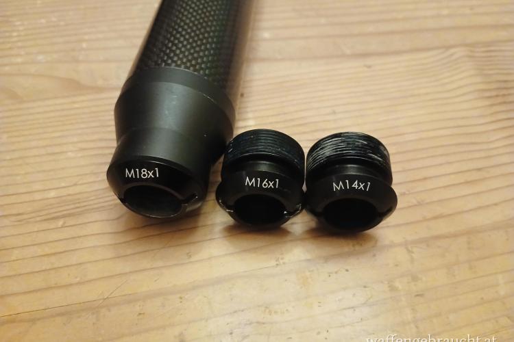 Gewindeadapter in M14x1, M16x1 und M18x1 sind inklusive.