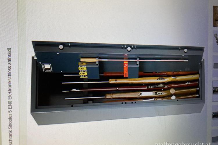 Waffenschrank für 5 LW wegen Platzmangel abzugeben. Der Schrank war nur zwei Monate in Gebrauch. Öffnung mittels elektronischem Zahlenschloss.