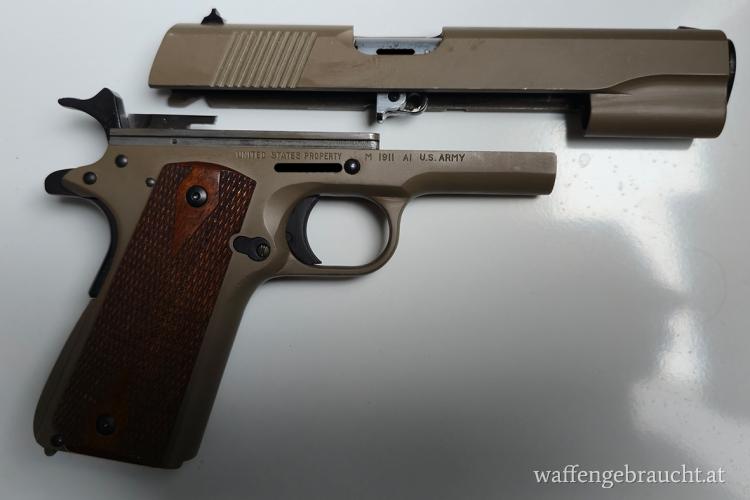 Verkaufe ein schön beschichtetes Wechselsystem Norinco 1911 Kal. 9mm mit derzeit noch frei erhältlichem Griffstück und 5 Magazinen.